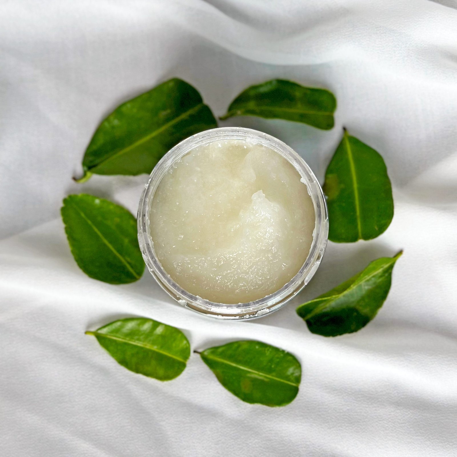 Our Lemongrass & Green Tea Natural Exfoliating Body Scrub combines the purifying strength of Green Tea with the invigorating zest of lemongrass to effectively lift away dead skin cells, boost circulation, and infuse your skin with deep moisture. Formulated with Sweet Almond Oil to lock in hydration, this exfoliating scrub helps maintain a radiant, supple complexion while defending against environmental stressors. Free from harsh chemicals and designed to suit all skin types, it offers a gentle yet thorough cleanse, leaving your body refreshed, renewed, and lightly fragranced with a delightful, long-lasting aroma.